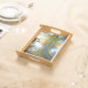 This is a well made, sturdy wooden tray with a flawless black finish and lovely map on the tray surface. It is both vintage & modern at the same time. Looks exactly like the photo; does not disappoint. So nice to find something of quality individually made and not the mass-produced 'shabby chic' merchandise seen in stores. I am so pleased to be able to give this to my college-age niece for her birthday. This can be used as a tray to hold jewelry or toiletries, or hung on the wall as art. The map surface is sealed (it is slightly shiny) so would be moisture resistant. It is well worth the asking price but I was able to apply a sale code as well. Very happy with my purchase. Map is crisp & clear and sealed with a water-resitant finish.