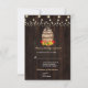 Fall Foliage Wine Barrel String Lights card design featuring a watercolour wine barrel, gorgeous fall foliage, string lights, wine bottle, wine glass and traditional farm foods on the barrel, all on an old barn. Use Customize tool to add your info. You can change fonts, colours. For matching items, please, visit my Fall Foliage Wine Barrel Collection.