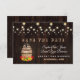 Fall Foliage Wine Barrel String Lights card design featuring a watercolour wine barrel, gorgeous fall foliage, string lights, wine bottle, wine glass and traditional farm foods on the barrel, all on an old barn. Use Customize tool to add your info. You can change fonts, colours. For matching items, please, visit my Fall Foliage Wine Barrel Collection.