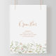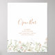 This fall garden wildflower wedding open bar sign is perfect for a rustic wedding. The design features pink, blush, rose and purple hand-painted wild flowers with butterflies.