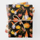 This is a cute set of gnomes, pumpkins and fall leaves wrapping paper in black, white and gray background colors.