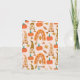 This is cute custom Thanksgiving card with a pattern that shows gnomes holding acorns and maple leaves with pumpkins, boho rainbow and chestnuts falling around them.
