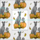 Fall Greyhound (gray) Dog Pumpkins Leaves Funny Fabric