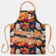 This apron design features a bold and vibrant autumn harvest theme. The background is a deep navy-blue tone, beautifully contrasted with clusters of fall leaves, flowers, and foliage in rich shades of burnt orange, golden yellow, warm cream, deep burgundy, and teal green. The layered, paper-cut style gives the design a modern yet festive dimension, making it perfect for Thanksgiving or fall cooking. The design blends personalization with the cozy seasonal vibe. It adds a fun, possessive twist that makes the apron feel both playful and custom-made—ideal as a hostess gift, holiday kitchen accessory, or for anyone who wants to claim their space in the kitchen during the holidays.