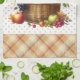Bring the warmth of autumn into your kitchen with this beautiful Fall Harvest Kitchen Towel. Featuring a charming wicker basket filled with apples, pumpkins, grapes, pears, and colorful fall leaves, this towel adds a cozy seasonal touch to your home. The rich colors, rustic plaid border, and cheerful polka dot background make it perfect for Thanksgiving, autumn gatherings, or everyday farmhouse décor. Soft, absorbent, and stylish, this towel is both decorative and practical—ideal for drying dishes, lining a breadbasket, or simply brightening up your kitchen during the fall season.