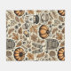 This charming vintage-style fall pattern features autumn leaves, pumpkins, acorns, cinnamon sticks, and cozy sweaters, bringing the warmth of the season to life. With its intricate hand-drawn illustrations, the design captures the essence of autumn, including playful touches like pumpkin spice lattes and warm socks. The cozy and whimsical details make it ideal for adding a festive touch to any space.