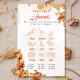 Engage your guests with this captivating Fall-themed 'Pregnant Animals' game card, perfect for adding an educational twist to your baby shower! Featuring a beautiful watercolor design of plump pumpkins and delicate autumn leaves, accented with subtle golden speckles, this game card perfectly blends with your seasonal decor. Guests will enjoy matching various animals to their average pregnancy durations, sparking lively discussions and fun competition. It's a fantastic icebreaker and a memorable activity for all attendees. Easily incorporate any specific event details or customized instructions to make this game uniquely yours. Ideal for autumn baby showers, rustic gatherings, or harvest-inspired celebrations, ensuring a delightful and insightful time.