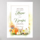 Pumpkins, sunflowers, wheat, daisies, colorful fall leaves wedding welcome sign poster