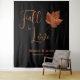 Autumn Fall In Love maple leaf rustic wedding theme photo booth backdrop. Elegant and simple copper, brown, with black background reception decor. Beautiful country themed design. Image copyright Marg Seregelyi Photography.