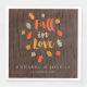 Add a special touch to your fall engagement party, couples' shower, rehearsal dinner, or wedding, with these autumnal napkins. This typographical design features the phrase "fall in love" in brush lettering style font and falling leaves, in orange, brown, and mustard yellow/ochre on a dark wood background. Personalize with your names and wedding date.