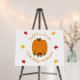 Fall in love baby shower gifts with autumn sunflower and floral design, orange pumpkin and frame of maple leaves