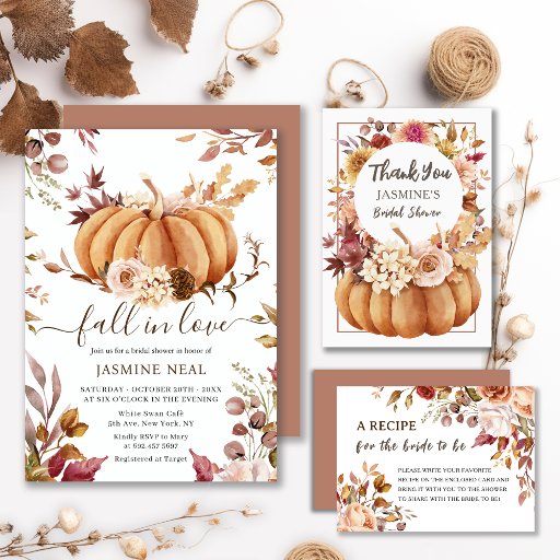 Fall in Love Bridal Shower | Pumpkin Rust Florals Invitation