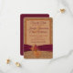 Send out a stunning wedding save-the-date card announcement to all the special people you want to attend your wedding with this small 3.5"x5" rustic autumn wedding save-the-date card with simulated burlap texture background, Kraft paper look text area trimmed in wine and orange with a burgundy wine ribbon image running across the bottom of the card with a cluster of autumn leaves and a small simulated wood heart in gold with burgundy lettering that says, "Fall in Love" on it. There is a removable arrow divider in burnt orange with the wedding text in a mix of wine and orange. It's sure to stand out as a lovely reminder of your upcoming wedding. If you need additional matching items, please email your request to niteowlstudio@gmail.com or use the Zazzle chat feature to get in touch.
