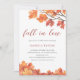 Customizable modern bridal Shower invitations, featuring a branch of a tree in fall and autumn leaves in tones of orange, rust, yellow and browns on a clean white background.