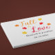 Fall in love custom event gifts with red, orange and yellow autumn color palette with maple leaves. Text can be customized for a wedding, bridal shower, baby shower or any other event