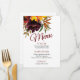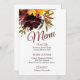 Fall themed menu cards are are the perfect accent for your autumn wedding or bridal shower. The burgundy blooms and bright sunflowers really pop against the dried leaves. Change the wording, font color and style to customize for your event. Many sizes available.