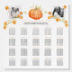 Autumn fall wedding watercolor painting wedding please find your seat, seating plan. This table chart plan is a 20 table layout featuring to instant photo holders for your own couples photo and fall vines and fall in love pumpkin. Perfect for an autumnal fall themed wedding or thanksgiving event. Edit with your own bride and groom's names, and wedding date or other event details and two photos. Other matching items are available. Original whimsical pumpkin watercolor hand painting and design by Sarah Trett for www.mylittleedenweddings.com