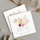 This wedding napkin features watercolor white and yellow pumpkins adorned with burgundy, maroon, and blush pink flowers over fall leaves. For more advanced customization of this design, please click the BLUE DESIGN TOOL BUTTON. Matching items are also available.