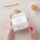 These "Fall in Love Pumpkin Botanical Floral Gold Wedding All in One Invitations" are designed with an easy to tear off perforated RSVP postcard. Just simply fold each card into the outlined shape, and then seal and send - no envelope needed for shipping.