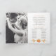 Autumn fall folded wedding program, featuring a cute watercolor art of a whimsical autumnal pumpkin and heart vines around the edges, in bright orange, red and dark brown and orange text on white and on the reverse text white and black text on orange. Personalize with your bride and groom's name and wedding or event date, full page photo, ceremony details, bridal party and small photo and thank you message on the back. Ideal for your fall wedding event. Other colors and matching wedding items are available. © Original hand watercolor painting and design by Sarah Trett for www.mylittleedenweddings.com