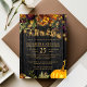 Beautiful rusty orange and dark burgundy autumn fall flowers and pumpkin borders with strings of golden twinkle lights over a dark brown barn wood background making a charming elegant FALL IN LOVE engagement party invitation with a trendy handwriting gold typography script. +++++++++ Easy to personalize with your details! +++++++++++++ Suitable for traditional autumn fall rustic | country | farmhouse | outdoor backyard engagement or other before wedding parties / barbecues.