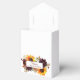 Fall themed tent style favor boxes are the perfect accent for your autumn wedding or bridal shower. The burgundy blooms and bright sunflowers really pop against the dried leaves. Change the wording and your desired color or font style.