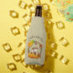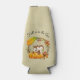 Bottle cooler with a typography design which says Fall is in the air. Illustrated with an adorable squirrel standing behind some orange watercolor pumpkins. A decorated foliage wreath surrounds them with an oak leaf, an acorn, autumn orange flowers and other sprigs and leaves.