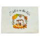 A large gift bag with a typography design which says Fall is in the air. Illustrated with an adorable squirrel standing behind some orange watercolor pumpkins. A decorated foliage wreath surrounds them with an oak leaf, an acorn, autumn orange flowers and other sprigs and leaves.