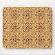 This mouse pad has a geometric design of manipulated squares in orange, brown, shades of green on a field of cream. If you want the same design with different colors, message me.