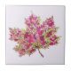 Autumn leaf tile with an abstract watercolor illustration of a colorful maple leaf in green and purple shades. This feminine maple leaf tile has customizable background color and is great for a girl who loves the fall season.