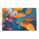 Fall leaves and rowan berry Placemat. Abstract modern autumn nature oil painted art in blue yellow orange colors.