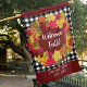 This pretty fall themed house flag features autumn leaves, black and white buffalo plaid, and a welcome message for your visitors. You can make a custom message if you'd like to edit the flag using the personalization tool in the listing.