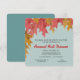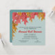 This invitation features a photo graphic of vibrant red and gold fall leaves across the top. The background is a light teal color and features customizable text for your dinner invitation details. This invitation is perfect for a professional gathering.