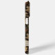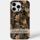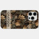 Customize this fall leaves camouflage iPhone 15 pro max case with your name in a trendy modern CAP font in brown on opaque cream. It's masculine and perfect for your favorite military, hunting, country or outdoorsman!