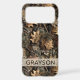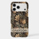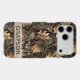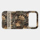 Customize this fall leaves camouflage iPhone 17 pro max case with your name in a trendy modern CAP font in brown on opaque cream. It's masculine and perfect for your favorite military, hunting, country or outdoorsman!