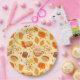 A unique fall pattern with golden leaves and berries, footballs, pumpkins, pumpkin spice coffee drinks and doughnuts, too! It's all the things I love about the fall season. This custom design is fun on paper party plates. You can add a different background color if you like. Looks nice on shades of black, cream, wine, white, blues and more colors. Change the size of the pattern to make it just right for you! Great for any fall occasion!