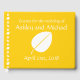 Create a lovely custom way for the guests of your fall wedding or event to leave their names and messages for the happy couple. A bright yellow background is decorated with a white leaf on both the front and the back. Along the spine, a pattern of leaves and acorns creates a sweet accent. The front has a sample message, names, and date that can be customized to make this book unique for the event.