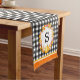 This 14 x 72 black gingham runner with striped edge, watercolor leaves and pumpkin wreath, and your initial would look fabulous on your table or side table. It's festive and fun yet classic and traditional. Add that little pop of fall!