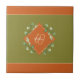 Add a special touch to your home this fall holiday season with this warm and cozy orange and green monogrammed decorative ceramic tile. Tile has an orange and green background with your family last name and initial in the center. Surrounding your custom text is a pretty green leaf wreath.