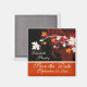 Fall leaves orange red white brown wedding Save the Date magnet, featuring beautiful autumn red, orange and white maple leaves in fall colors and graceful swirls on brown background. An elegant, modern invitation perfect for a fall wedding traditional or contemporary.
