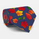 Fall Leaves Pattern Dark Blue Autumn Tie