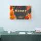 Celebrate the warmth of family and the joy of gratitude with our customizable Thanksgiving banner! Set against a backdrop of midnight black, this banner is adorned with a cascade of vibrant autumn leaves in hues of red and orange. The words “Happy Thanksgiving” are elegantly scripted in the center, with space below for your family name. A charming pumpkin accent adds a festive touch. The entire design is sprinkled with gold glitter and swirls, adding a touch of glamour to your indoor Thanksgiving decor. This banner is not just a decoration, but a celebration of love, gratitude, and togetherness.