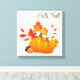 Wrapped canvas art is shown with a lovely art print of fall time leaves and pumpkins.