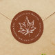 Add a seasonal touch to your stationery with this return address label featuring fall leaves in warm autumn tones. Designed with elegant circle text lettering, this versatile template doubles as an envelope seal for a fall wedding or special event. Perfect for the bride and groom who love a timeless, nature-inspired look, this minimalist design blends style and simplicity, making your correspondence beautifully memorable.