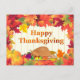 A gorgeous Thanksgiving Greetings postcard, with colourful fall leaves, berries and turkey of course!