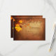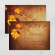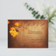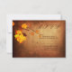 This stylish 3.5x5 Wedding RSVP reply flat card has a tan and brown vintage distressed background with a grapevine branch on the top left that has some yellow, orange, red, and brown fall leaves and "grape like" shapes. On the right, you can easily customize the wedding ceremony RSVP information.
