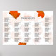 Fall wedding large seating chart poster is 24 x 36 inches. Seat guests by last name initial or by table number / name. Orange foliage / leaves with black text. Delete any unneeded sections.