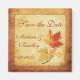 The text on this fall maple leaves wedding save the date magnet is fully customizable. This elegant magnet features a pretty vintage looking nature design that would work well for a wedding in the fall. Natural colors like brown, red, yellow, orange, and tan with a forest feel.. perfect for nature loving brides. To change it use the personalize option. For more extensive text changes, such as changes to the font, font color, or text layout, use the customize option. Although this save the date magnet is currently customized for a wedding, it could also be used for other special occasions such as a wedding anniversary, a birthday party invitation, or a retirement party. Really it's up to you. All you need to do is change the text. You could also remove the "save the date" text with the customize option and use this as a wedding favor. Some matching products you might like:
