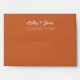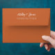 The Fall Love Burnt Orange Script return address envelope features a warm burnt orange envelope printed with elegant white script and clean uppercase lettering. The contrast feels refined and inviting, offering a cozy seasonal tone that pairs beautifully with fall wedding invitations and coordinated stationery suites. Easily personalize with your details.