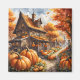 Magnet is shown with a festive fall pumpkins house scene art print.